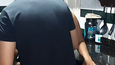 "My stepmom gives me a blowjob in the kitchen"