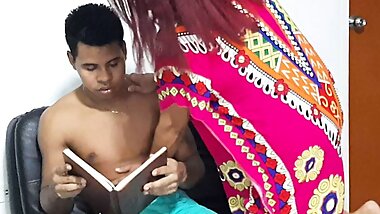 "Perverted Indian stepmother without underwear makes her stepson's hard cock so he can fuck her."
